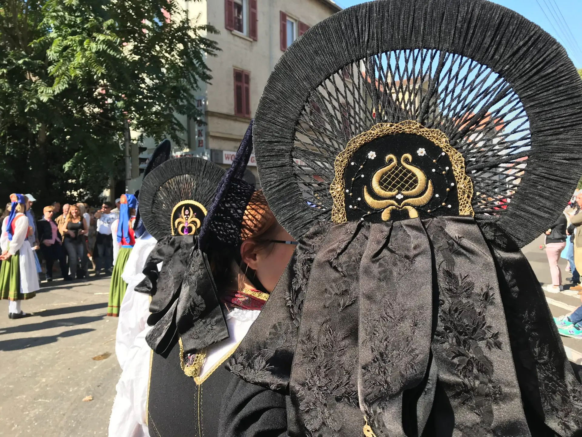 Unsere Tracht orientiert sich an der historischen Kleidung des unteren Illertals um 1820: Die Frauen tragen elegante Chenille-Radhauben und farbige Mieder, die Männer traditionelle Kniebundlederhosen mit roter Weste und Trachtenhut. Jede Tracht erzählt ein Stück Geschichte – und wir erzählen sie weiter.